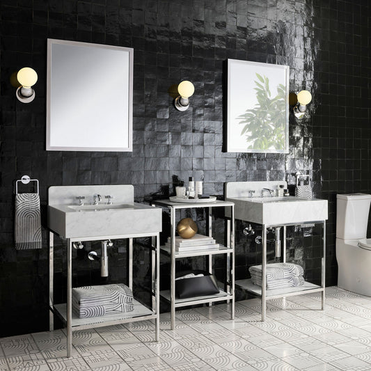 Ann Sacks | Cornell 24" Carrara Marble Vanity 1-Shelf Polished Steel w/ Sink