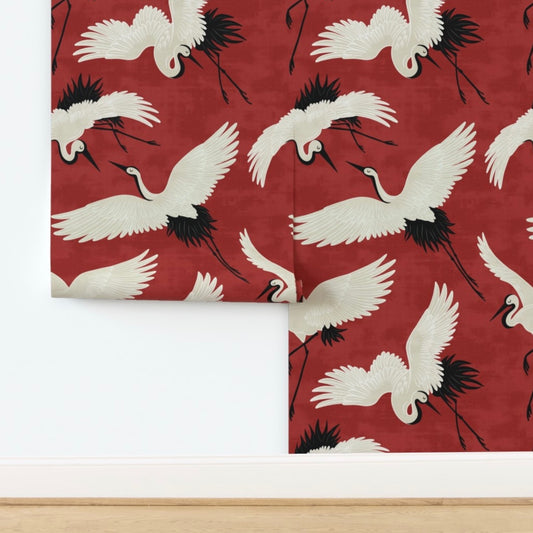 Kimsa Design | Wallpaper in Cranes-Red