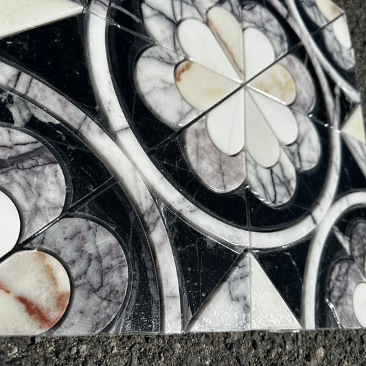 Artistic Tile | Encaustic Flower Waterjet Mosaic 16x16