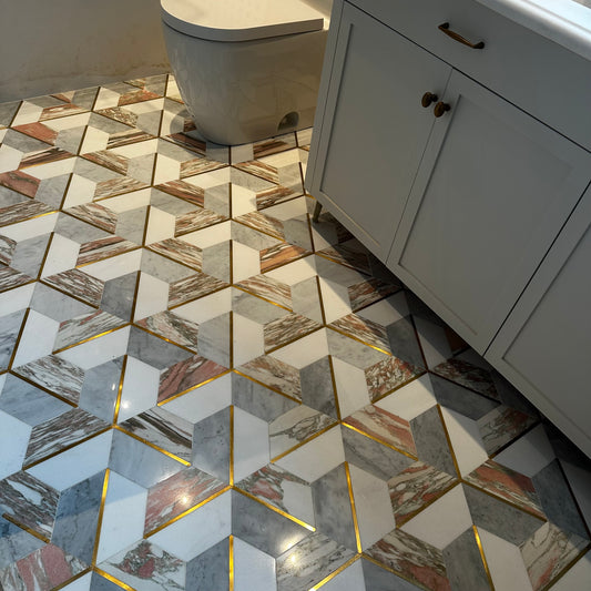 Soho Studio | Carraway Rosa Polished Marble and Brass Mosaic Tile