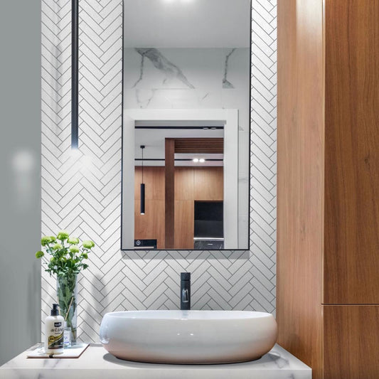 Natural Stone Resources | Thassos White 1x4 Marble Herringbone Tile