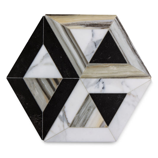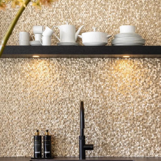 Porcelanosa | Gravity Aluminum Hexagon Gold Tile 12x12