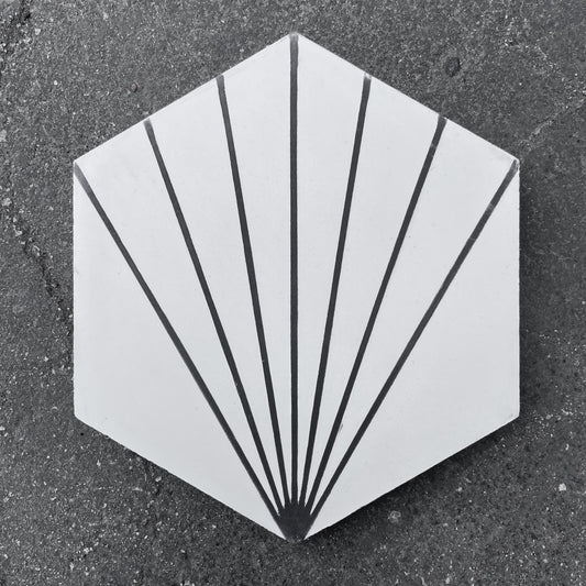 Villa Lagoon Tile | Spark C 8" Hex Tile in Black And White Morning