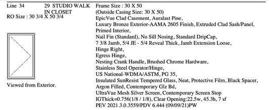 Jeld Wen | EpicVue Clad-Pine Awning 29-3/4"x24" in Luxury Bronze Argon Glass