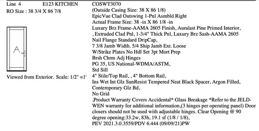 Jeld Wen | EpicVue Clad-Pine Door W38 x H86-1/8 Lux Bronze Argon Glass