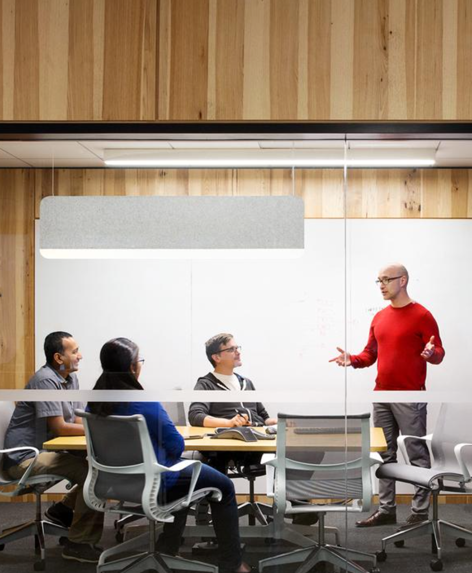 The Slab 150 light combines a visually graphic presence, impossibly slim profile and acoustic dampening properties to provide an aesthetically unique and diverse light fixture which is effortlessly useful in a myriad of applications; corporate office; crowded restaurant; dining room table, and much more.