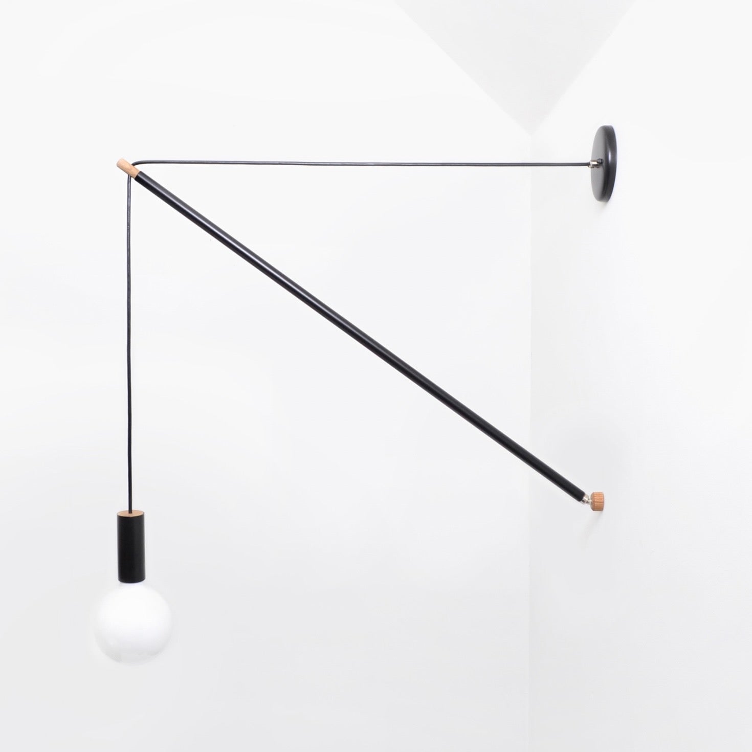 The Pennant Wall Light is an adaptable fixture with a customizable silhouette. Create pennant shapes with dramatic drops by varying the space between the wall mount and canopy. In the level position, the light functions as a swinging sconce. Perfect for many installations from creating huge triangulations in tall spaces to bold bedside lighting.