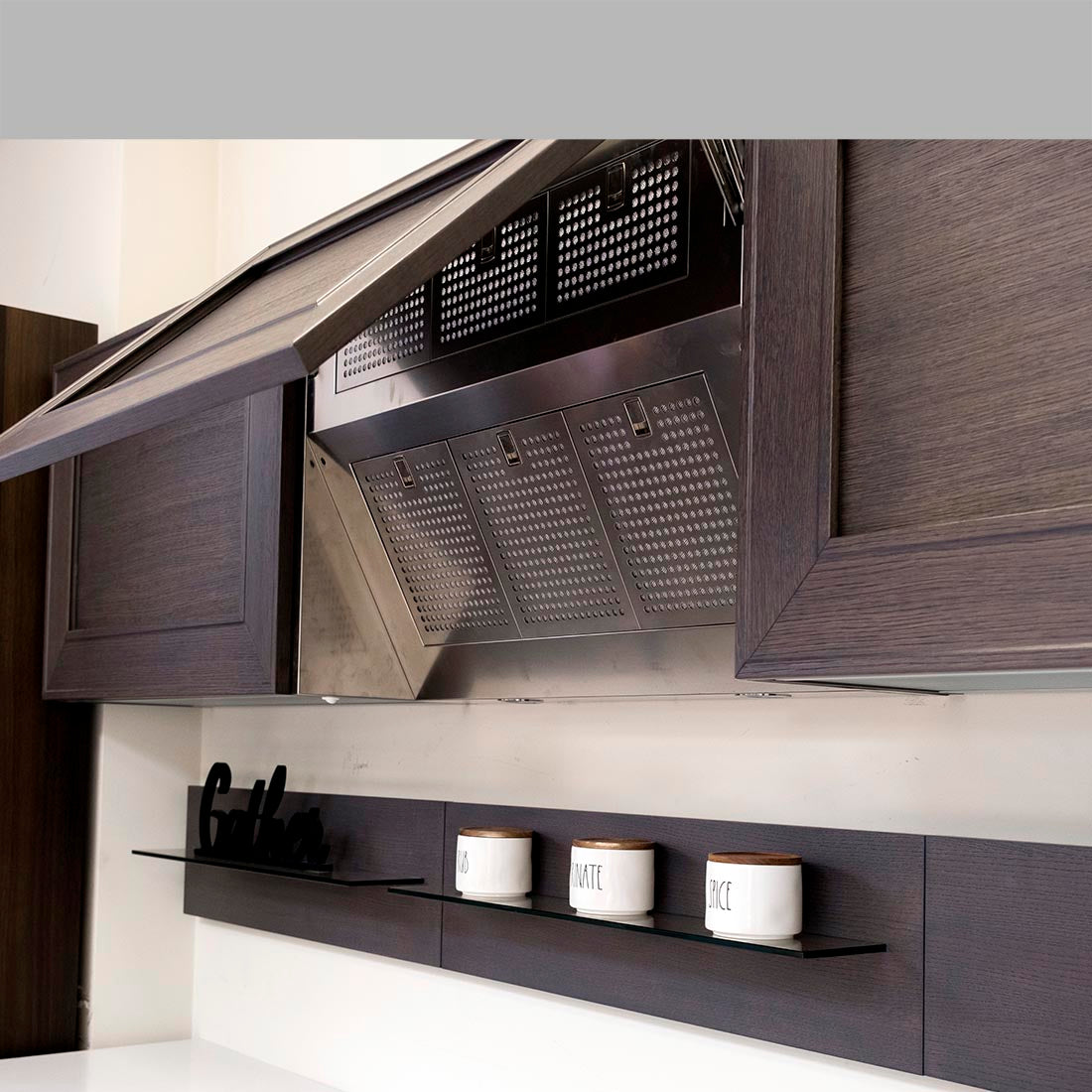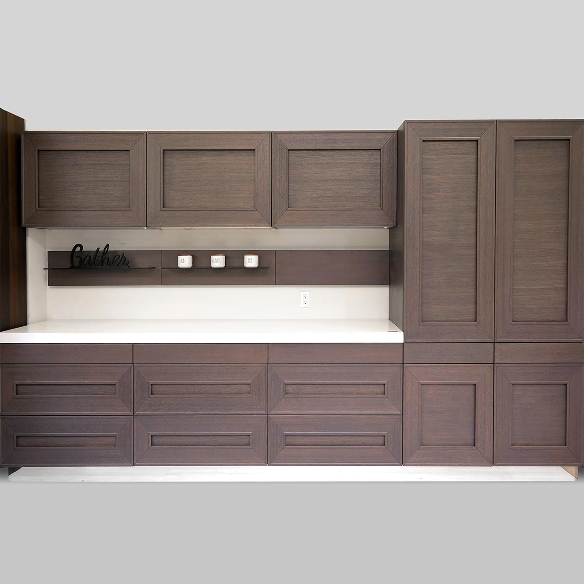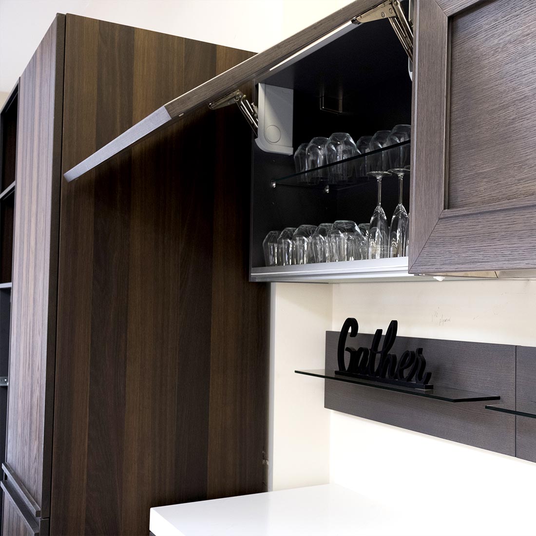- Kitchen accessories and decoration not included (“Gather” sign, rub and marinate jars, and glasses)