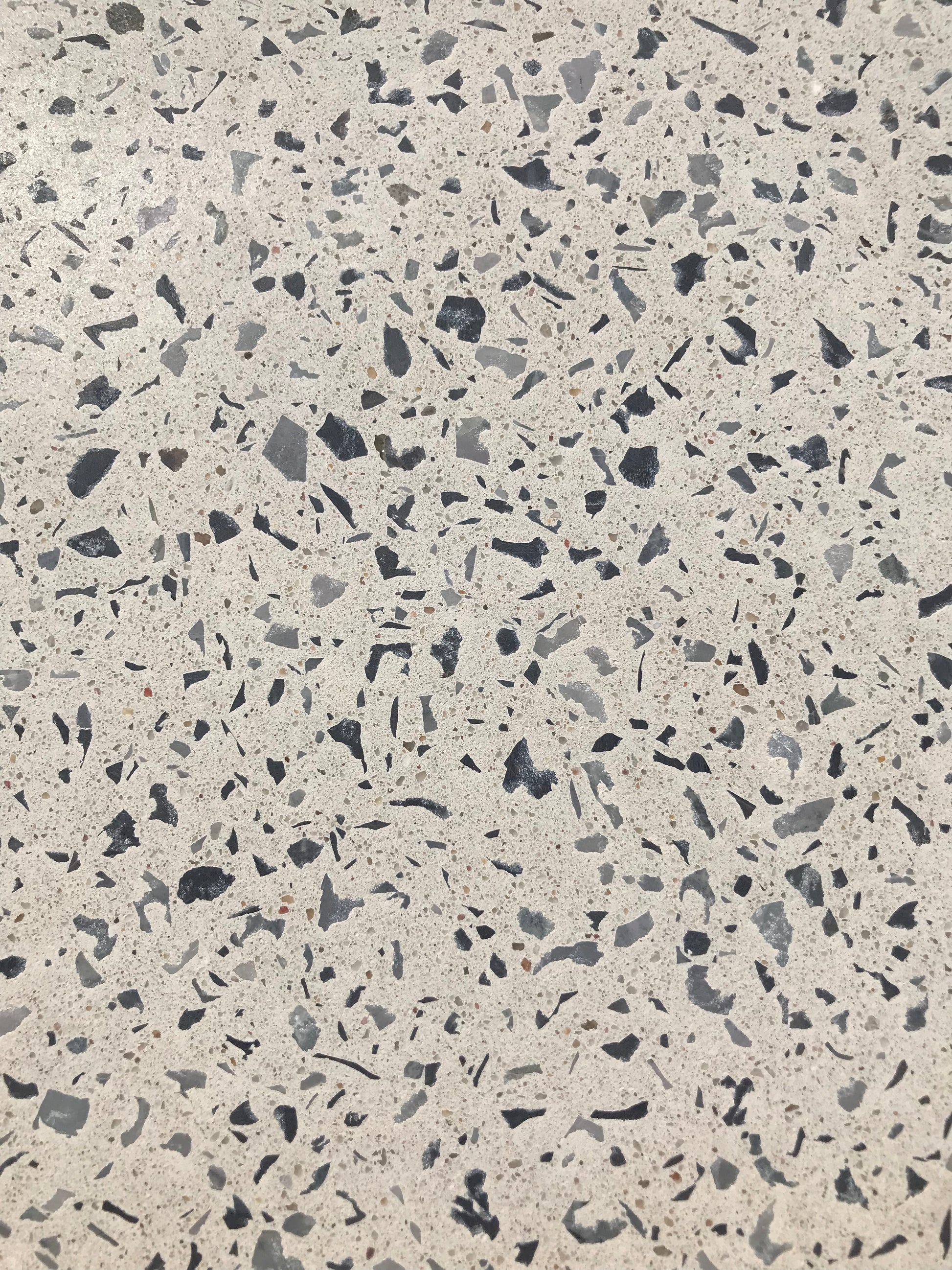 Concrete Collaborative Terrazzo in Blonde and Black Chip. 12”x12”x5/8”. 250 square feet available. The price is per square foot. Each tile is one square foot. Weight is per tile.