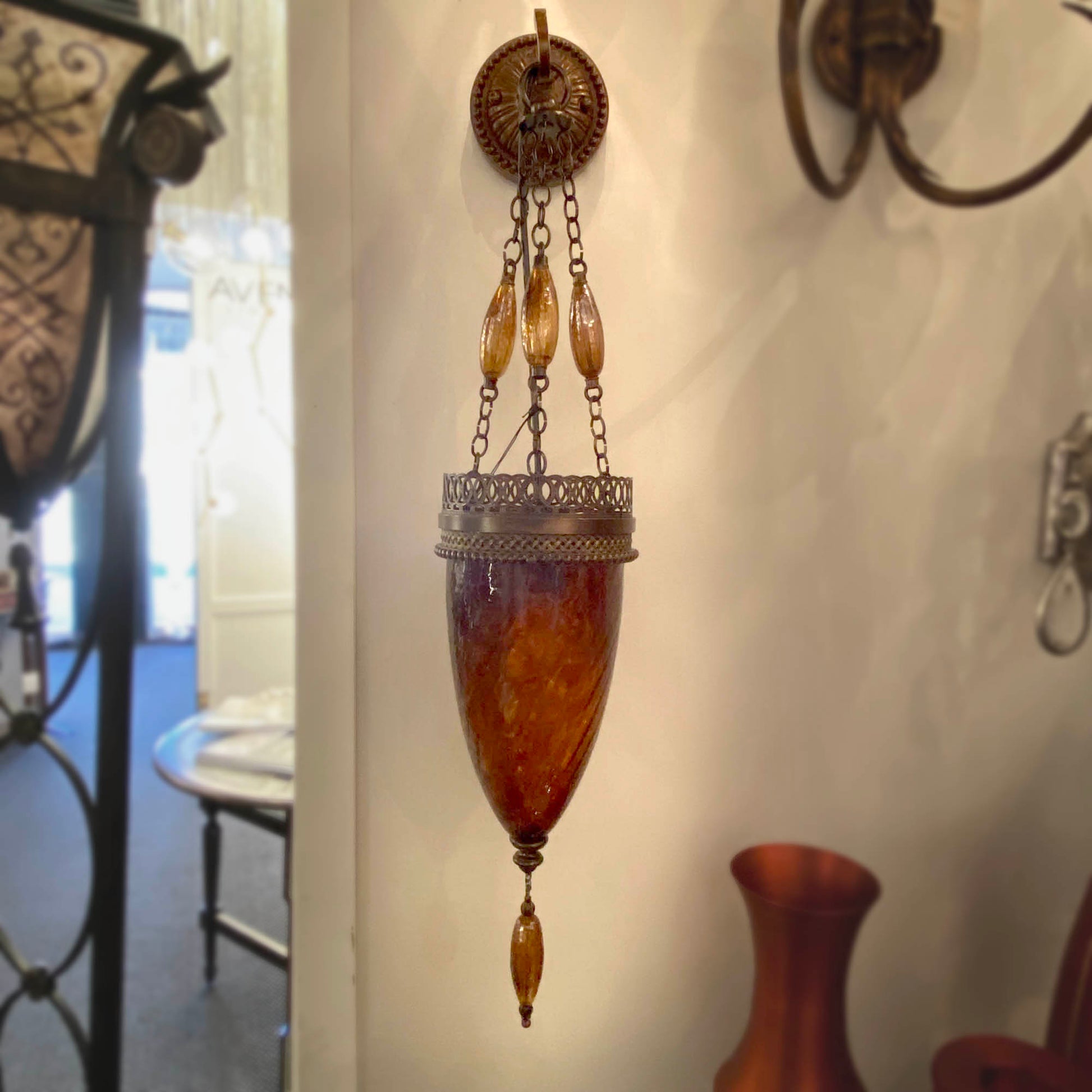 Fine Art Lamps | Scheherazade One Light Wall Sconce in Dark Bronze and Amber Glass