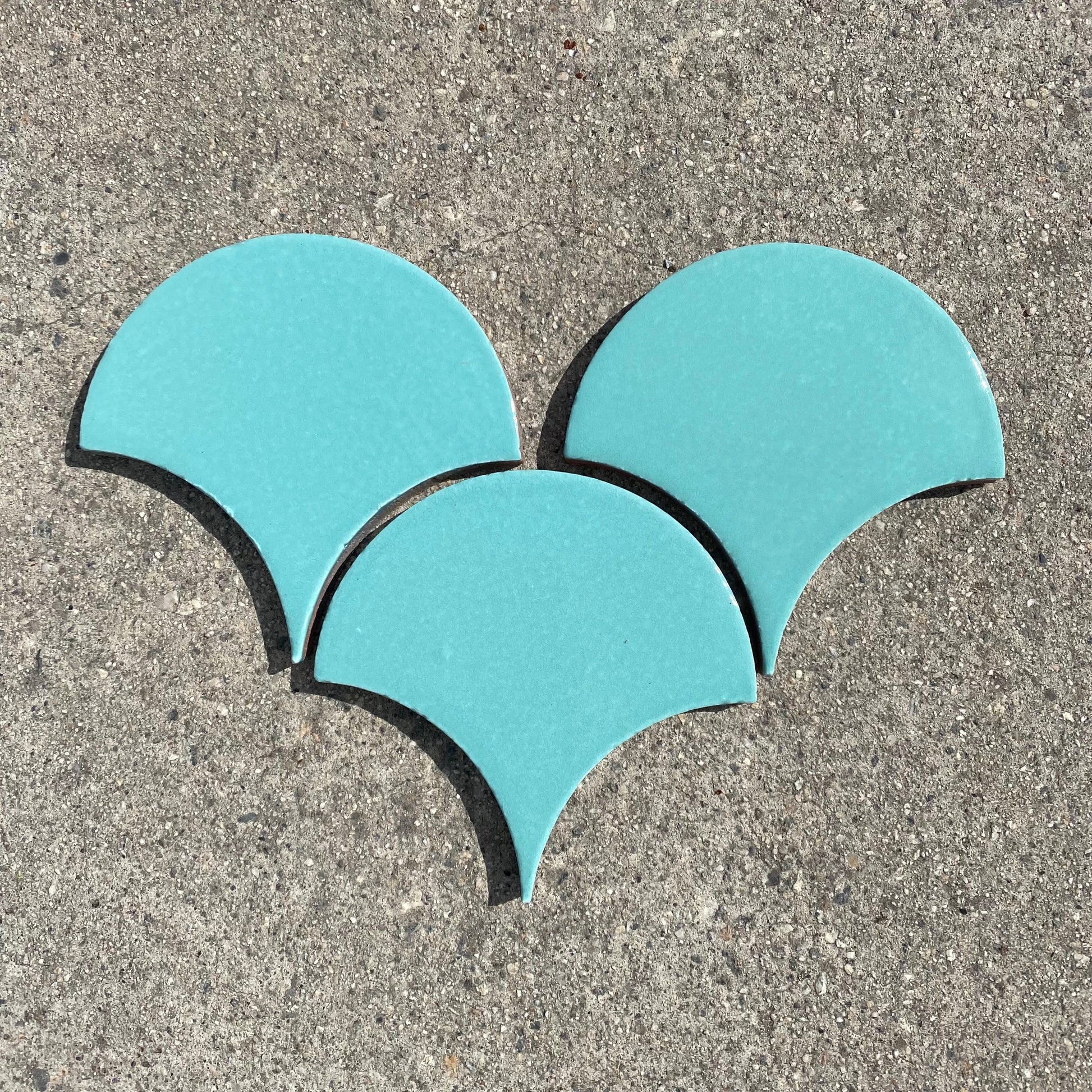 JR Ceramica | Scalloped 4 Inch Tile in Acqua Gloss Glaze.