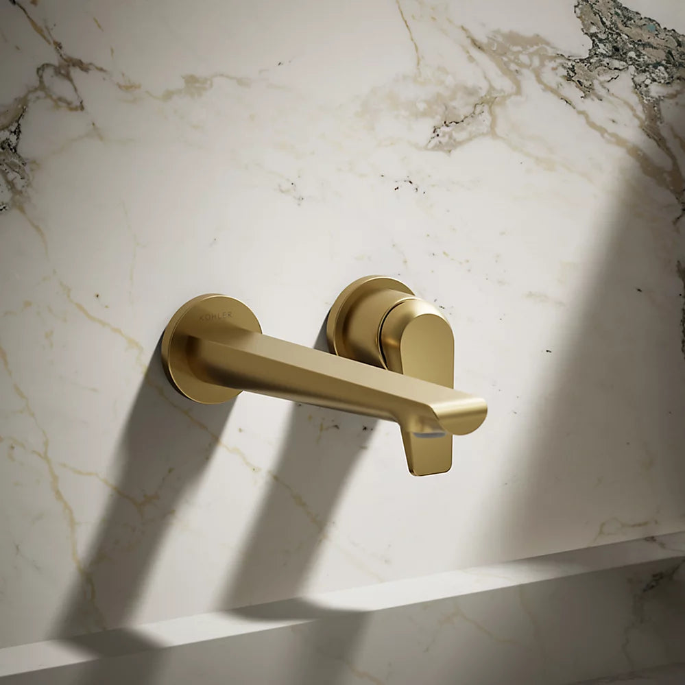 Kohler | Avid Wall-Mount Bathroom Sink Faucet, 1.2 gpm in Vibrant Brushed Moderne Brass
