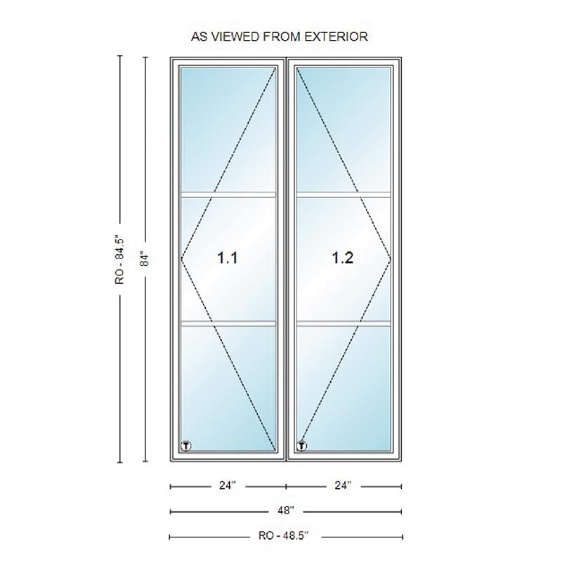 Unit 1.1: Pdl, Colonial, 1W3H, 7/8" Bars, Square (S4S) Bars - Exterior