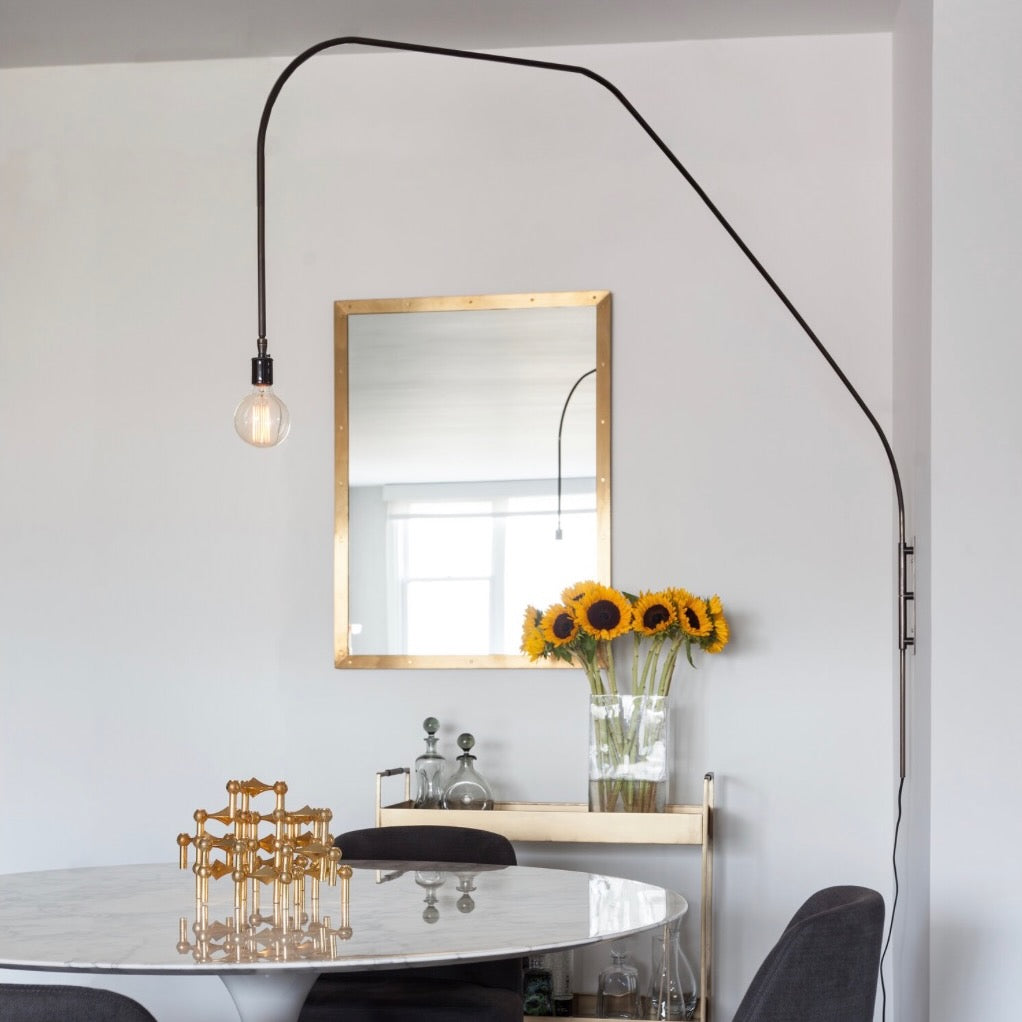 Made with hand-finished, finely cut brass, the design of the Switch collection emphasizes the expression of the material and the detailing of its components. The use of different finishes and patinas gives the fixture a retro Industrial Design that is accentuated by the movement of its pivoting arm and rotating shade. This mobility allows numerous configurations, making it a versatile system that can be playfully adapted to different applications.