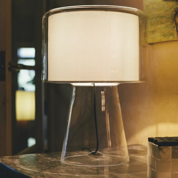 Marset | Large Mercer Table Lamp w Cotton Shade Encased in Blown Glass