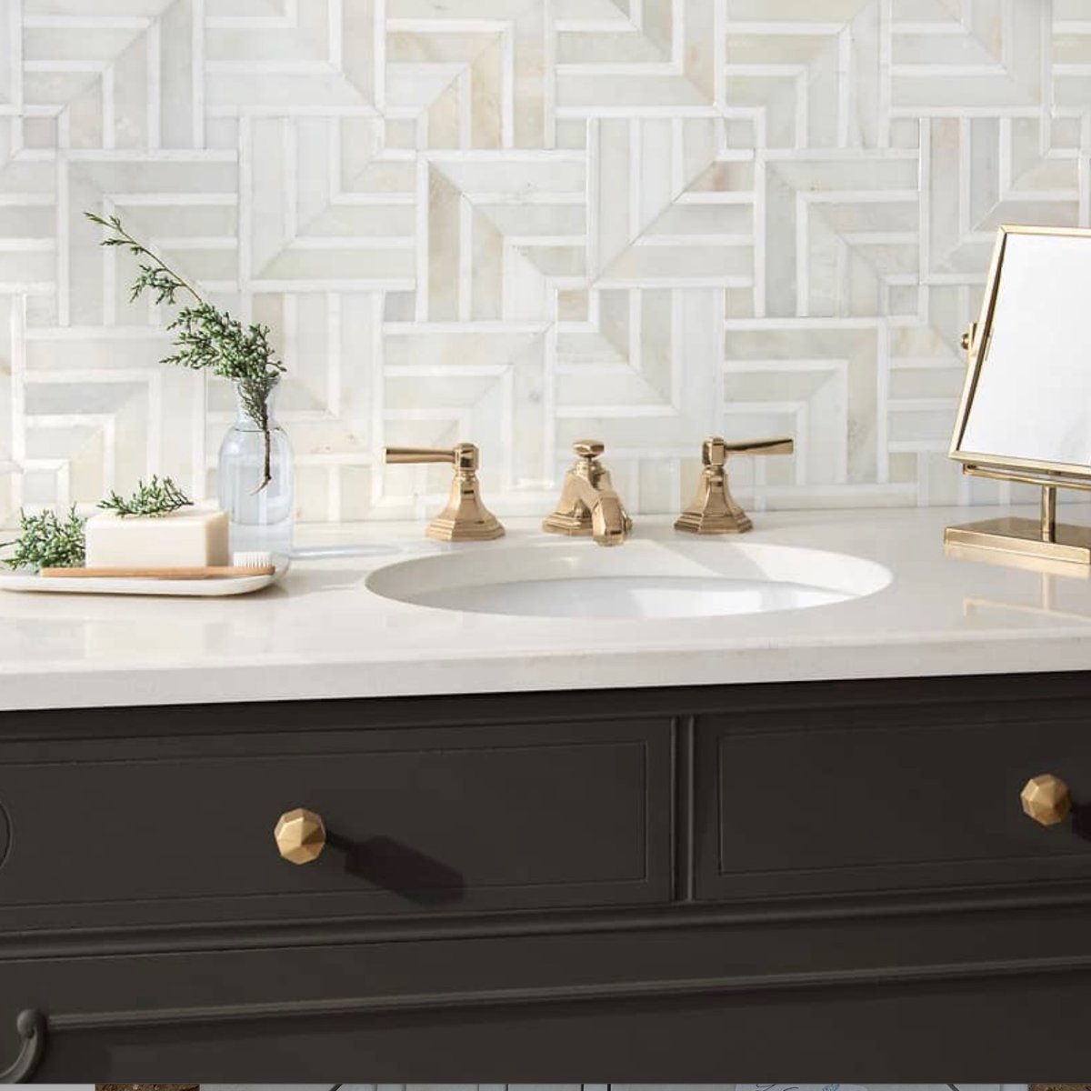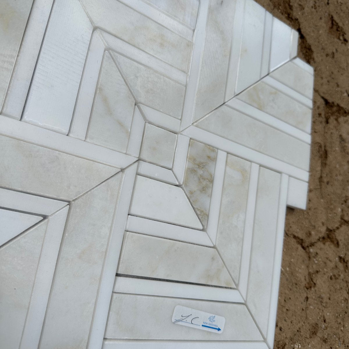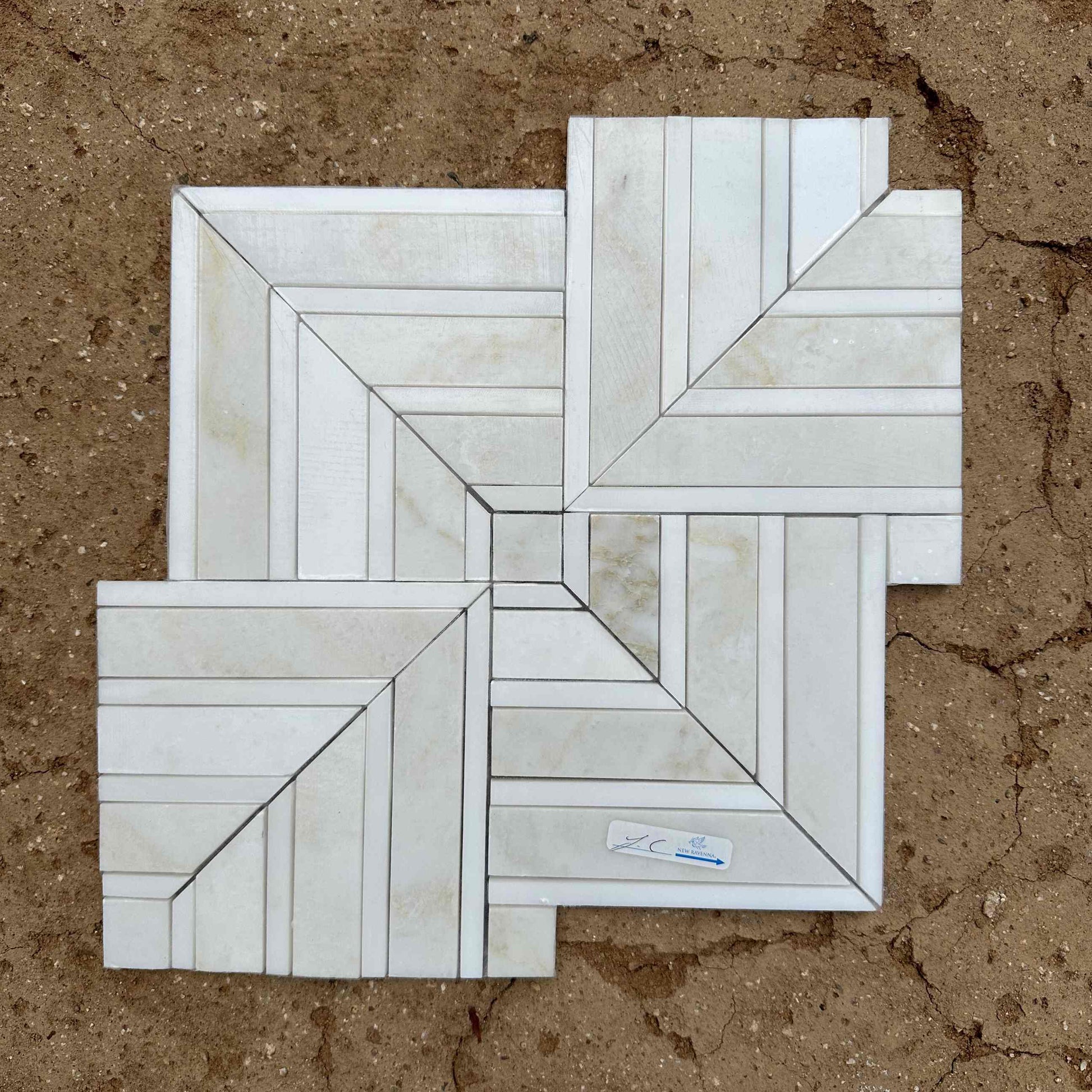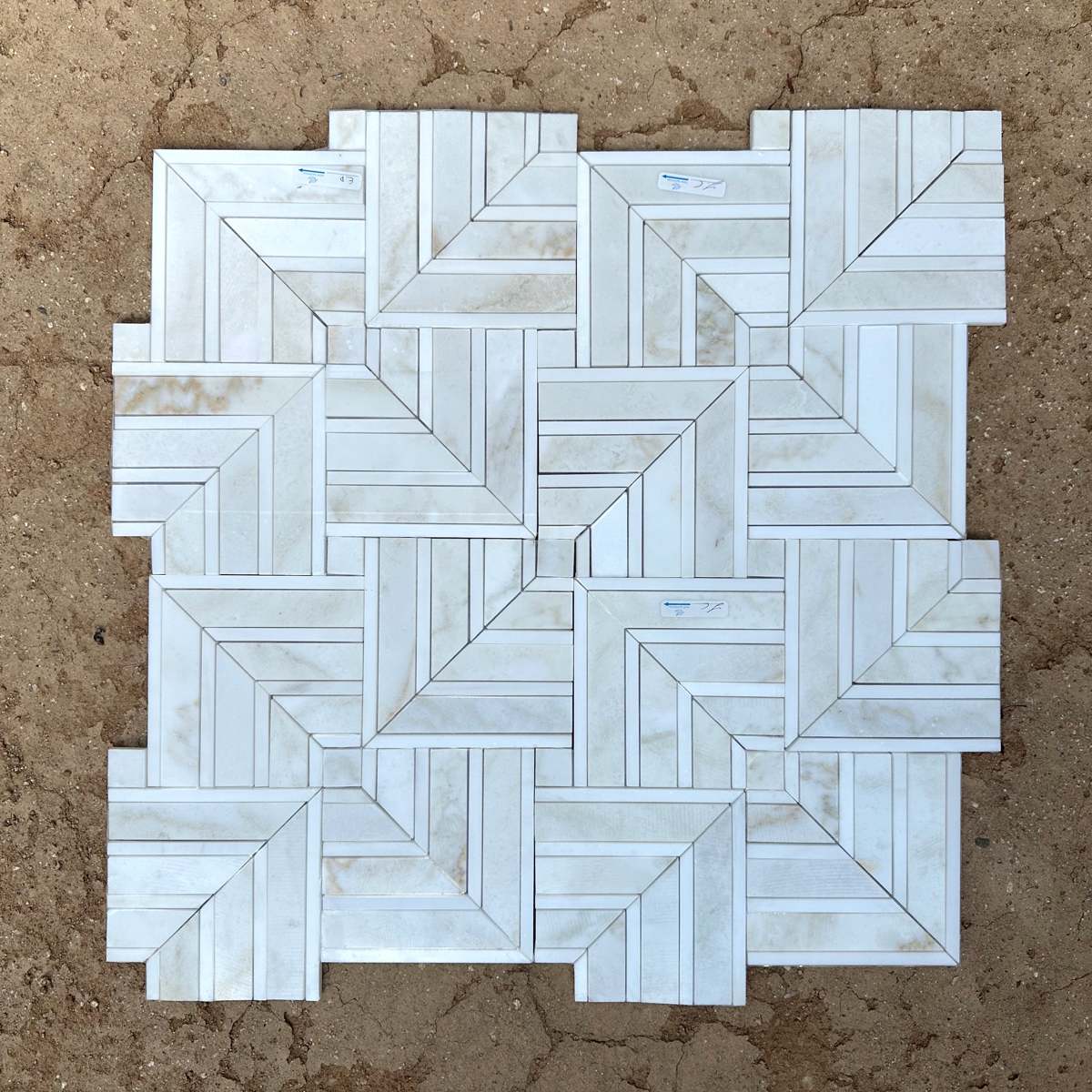Delaunay in polished Cloud Nine and Dolomite is a hand-cut mosaic from the Studio Line by New Ravenna.