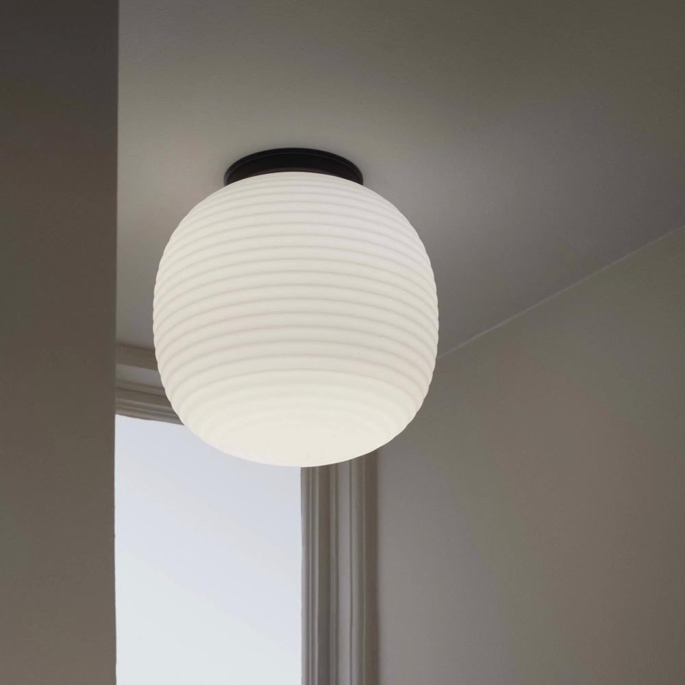 A dead ringer for the traditional Asian rice paper lamp, Norwegian designers Torbjørn Anderssen and Espen Voll translate that iconic shape to mouth-blown opal glass. Available in 2 sizes, Lantern pairs the distinctively rippled glass globe shade with a black powder-coated metal ceiling mount. The fixture's serene simplicity makes the light ideal for hallways, kitchens and bedrooms as well as in contract spaces such as cafes and restaurants, spreading its soft but even glow of illumination.