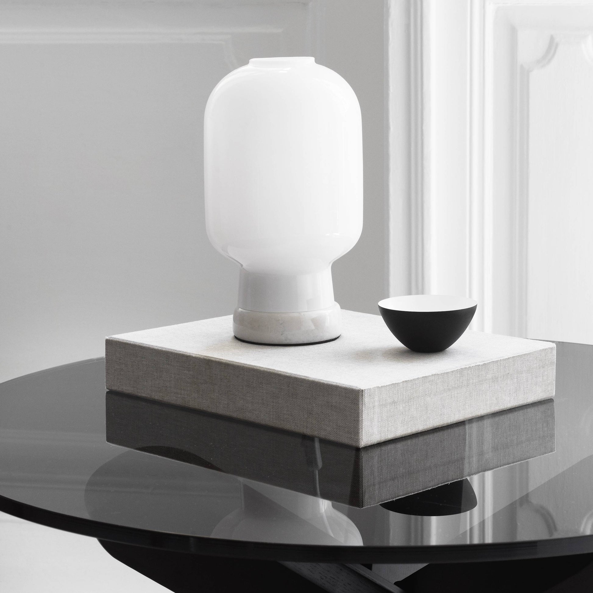 Get Amp-ed up! Danish designer Simon Legald has fashioned his Amp Lamp in the shape of old amplifier tubes from a 1960s radio. The familiar oval form and the glow of the lamp is an obvious reference, of course. Rendered in contrasting materials of delicate glass and luxurious marble by Normann Copenhagen, Amp more than transcends its humble origins.