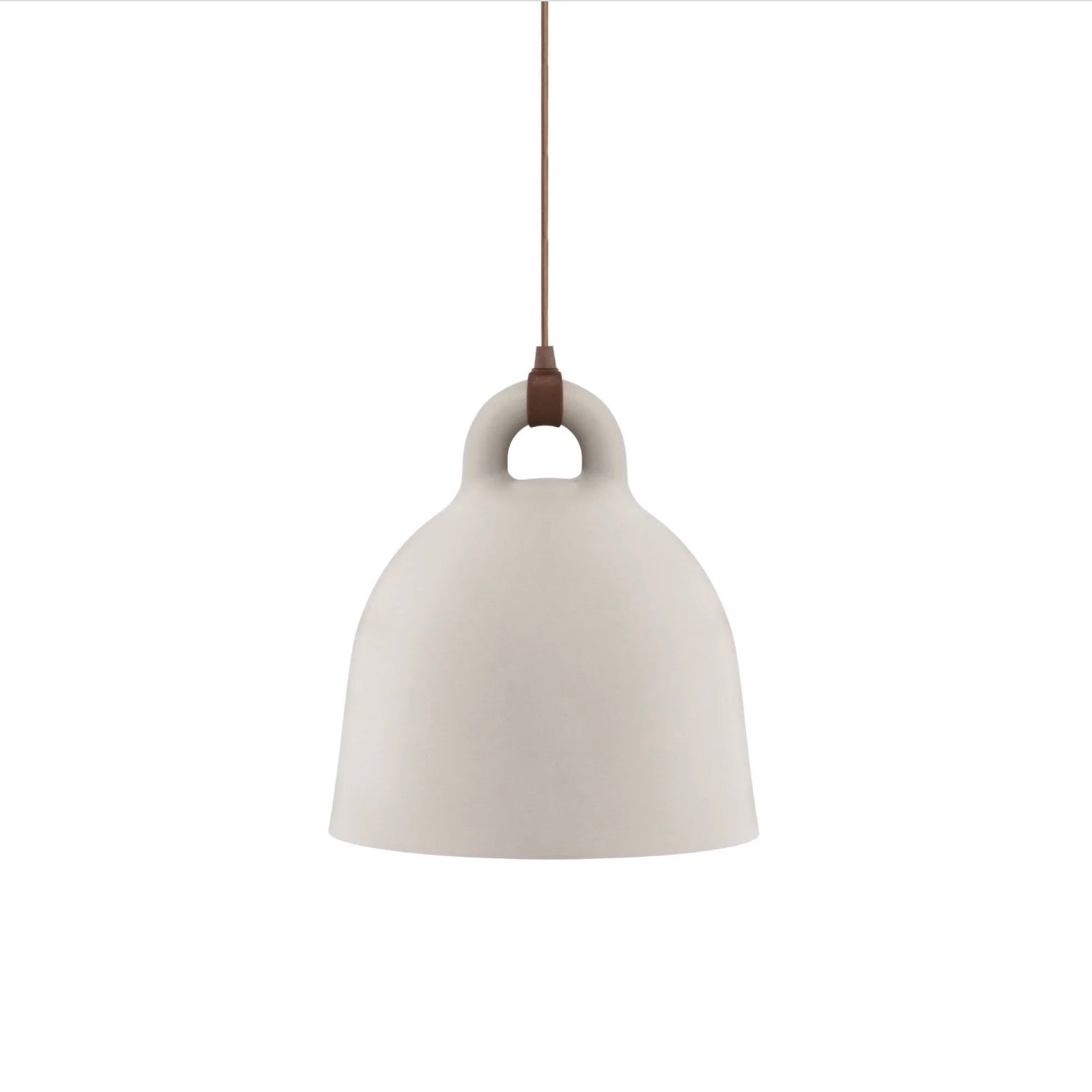 Beautifully bulbous, this ceiling lamp riffs on the iconic bell form. But instead of a a heavy cast piece, the thin metal of this bell makes it unexpectedly light. Designers Jacob Rudbeck and Andreas Lund paid special attention to every possible detail, from the curve of the overall form and the matte surface finish to how the inner side reflects the light, providing ideal lighting over, say, a dining table."Often, the fixtures, or the part that connects the cord to the lamp, are not the primary aspect of a lamp's design. They are more of a necessity. In Bell you have a lamp where the connection between the cord and the lamp is evident," say Andreas and Jacob, who realized their idea with Normann Copenhagen. "Just as light is a gatherer, the bell has historically been used to call people to come together—to gather people. With its bell shape, Bell can also be used to create a cozy place to gather in the room."The two believe in modern design that doesn't have to be "loud." The Bell Lamp fits that desire perfectly. Jacob attended the architecture arm of the the Royal Danish Academy of Fine Arts, and Andreas the Danish Design School. The two met during teaching jobs and decided to merge their studios.
