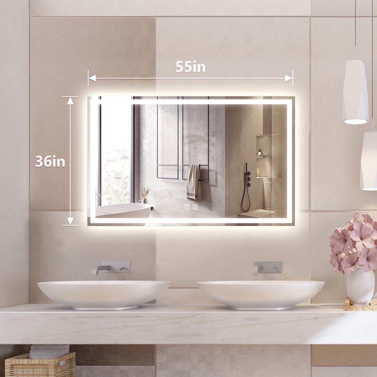 Orrin Ellis | 36" x 55" LED Bathroom Mirror, Dimmable Vanity Mirror Anti-Fog Wall Mounted With Lights