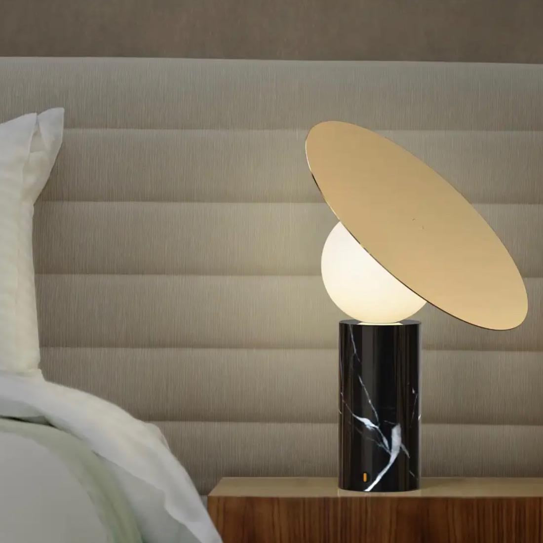 Pablo Designs | Bola Disc Table Light in Marquina Marble & Brass