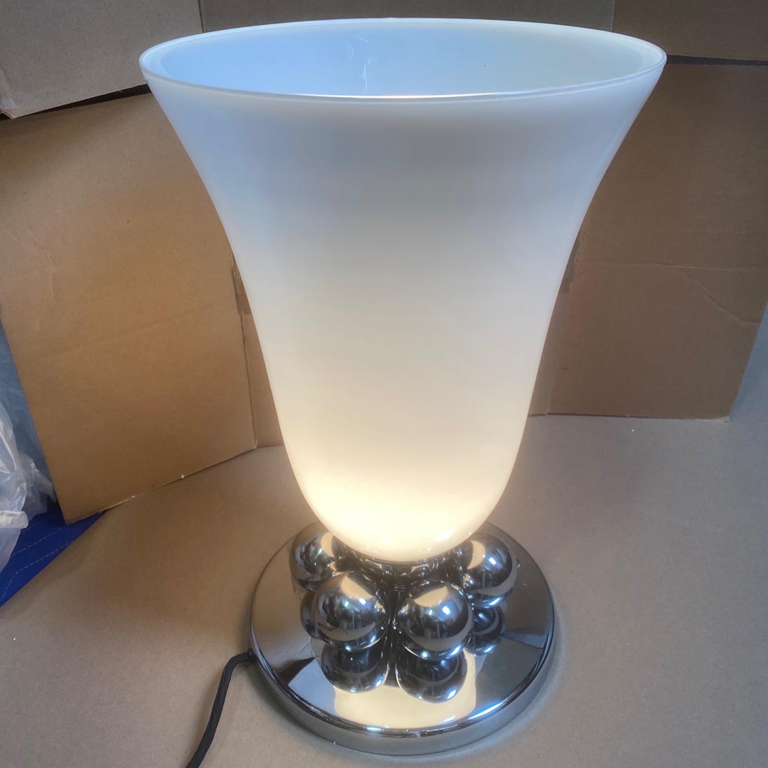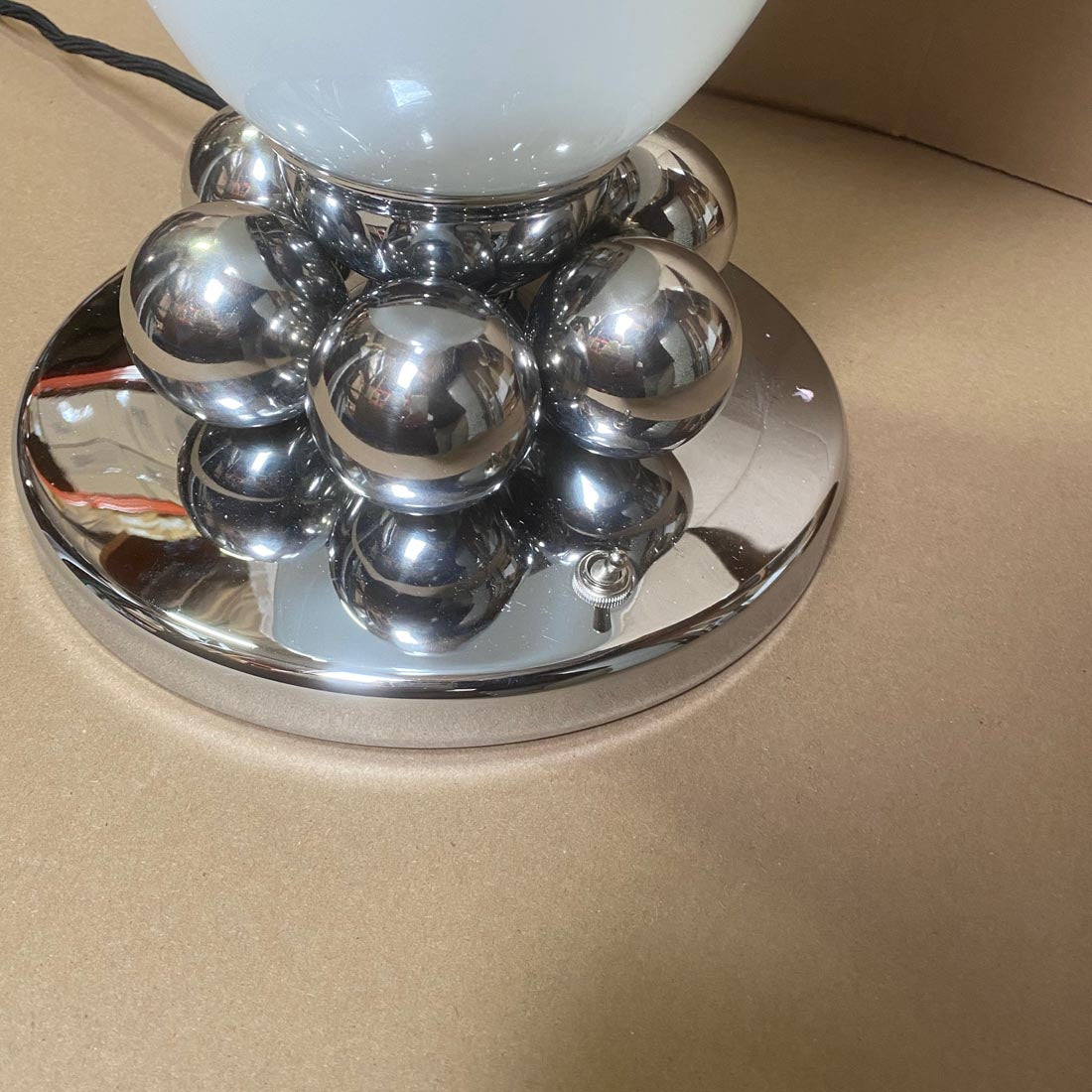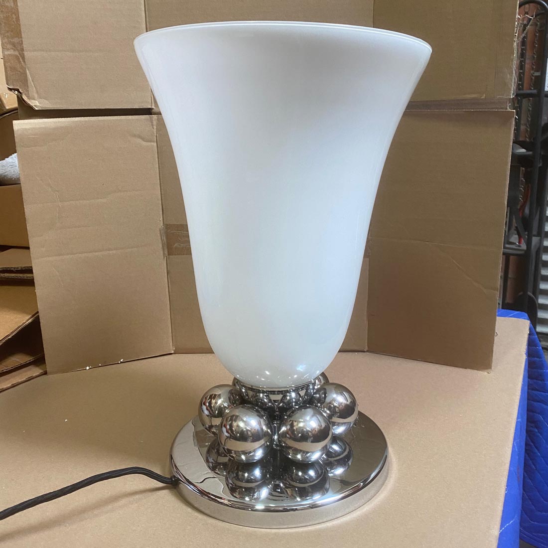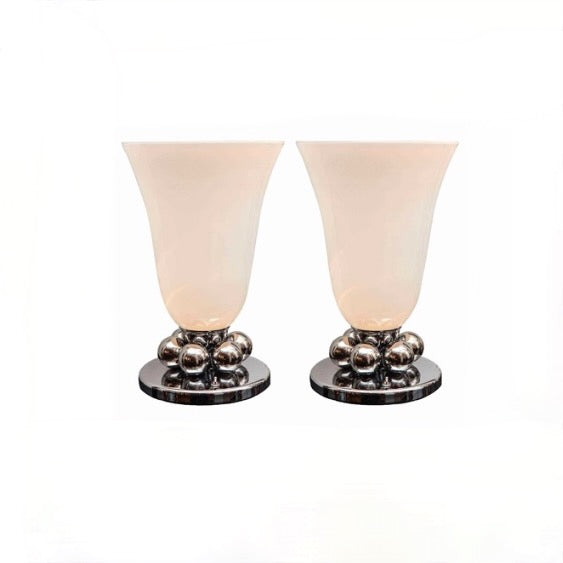Pair of Table Lamps | Polished Nickel and White Glass Shade, Round Accent Balls