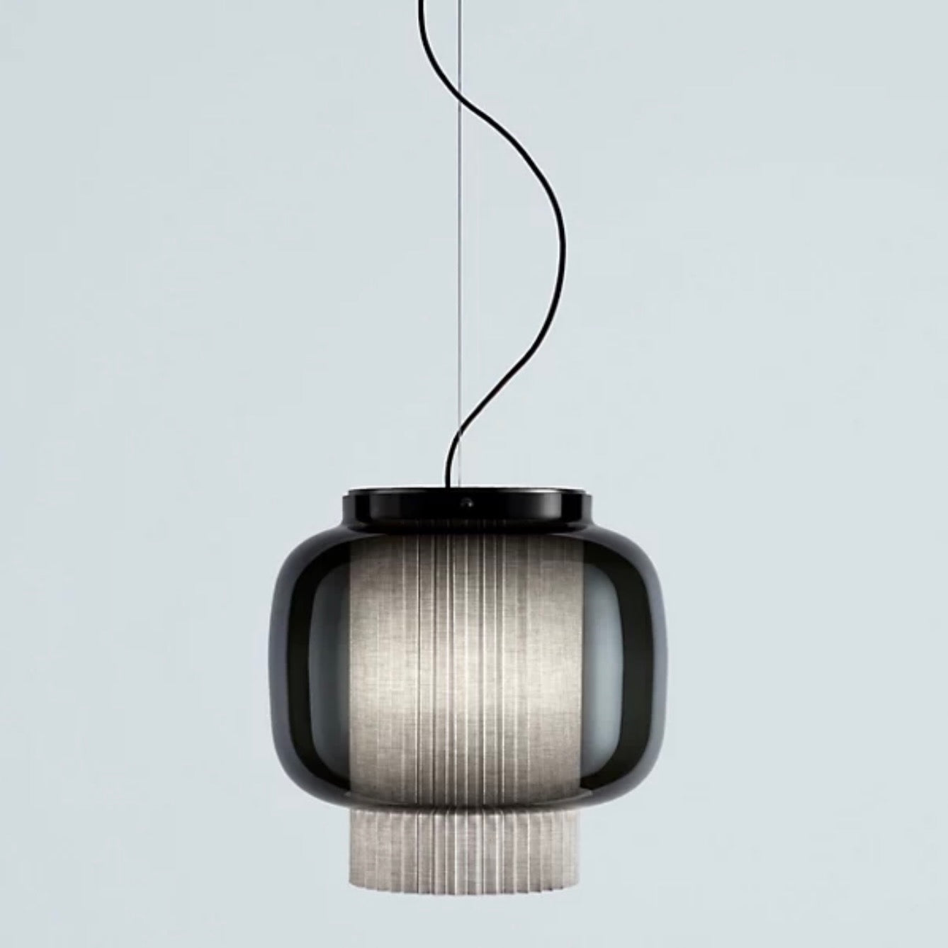 An exquisitely elegant blend of artisanal blown glass and a plissé textile diffuser, its name is derived from the Spanish "Mantón de Manila," a traditional silk shawl often worn by flamenco dancers.