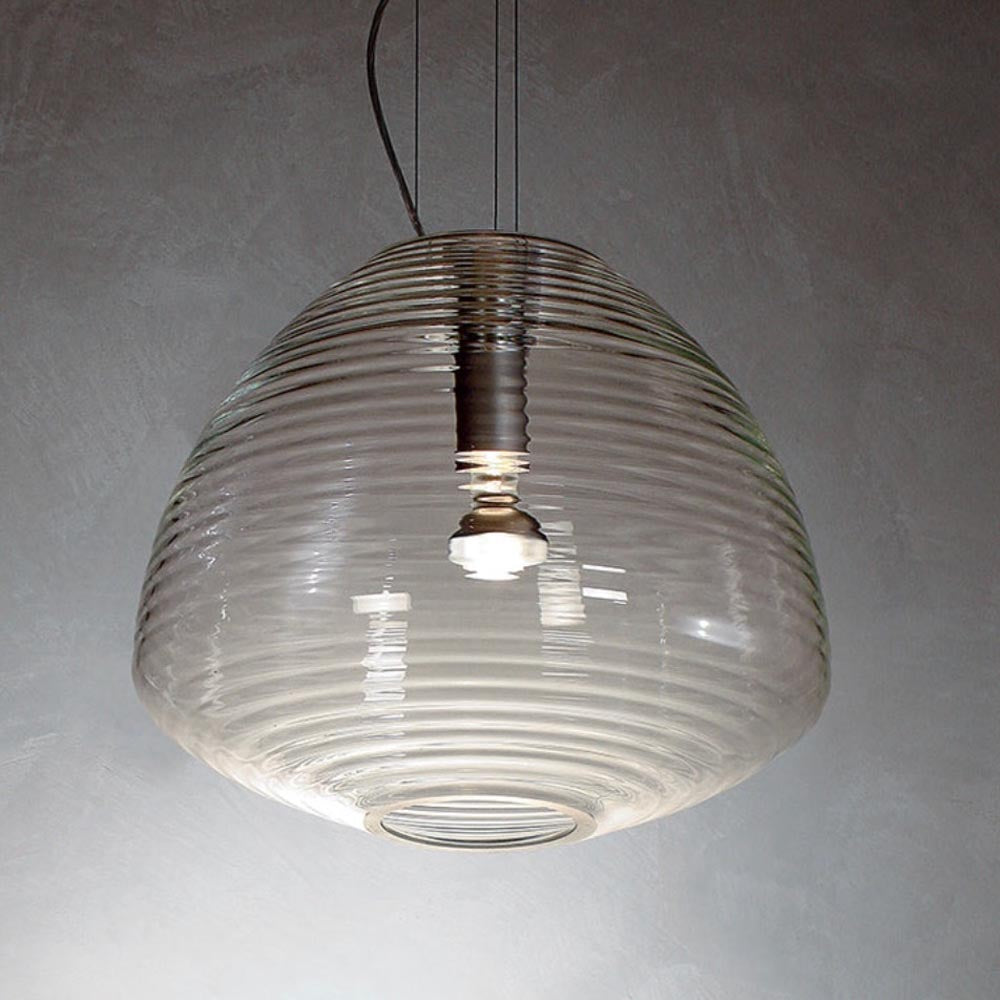 The shape of the hand blown murano glass recalls the design and fragile consistency of Japanese paper lanterns. Designed by Michele de Lucchi.