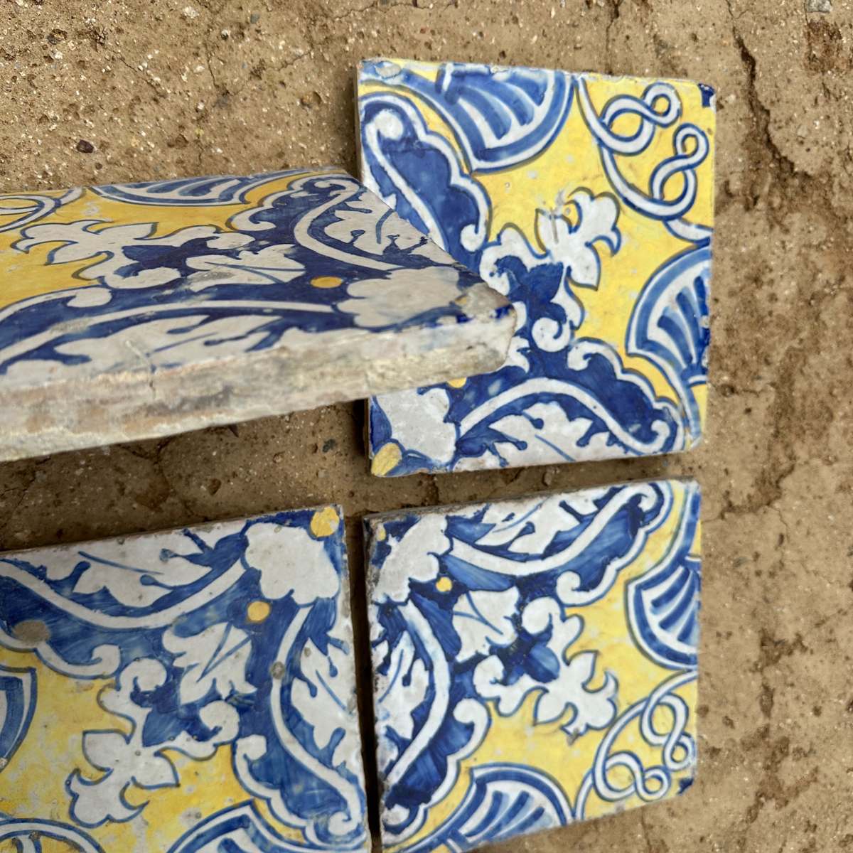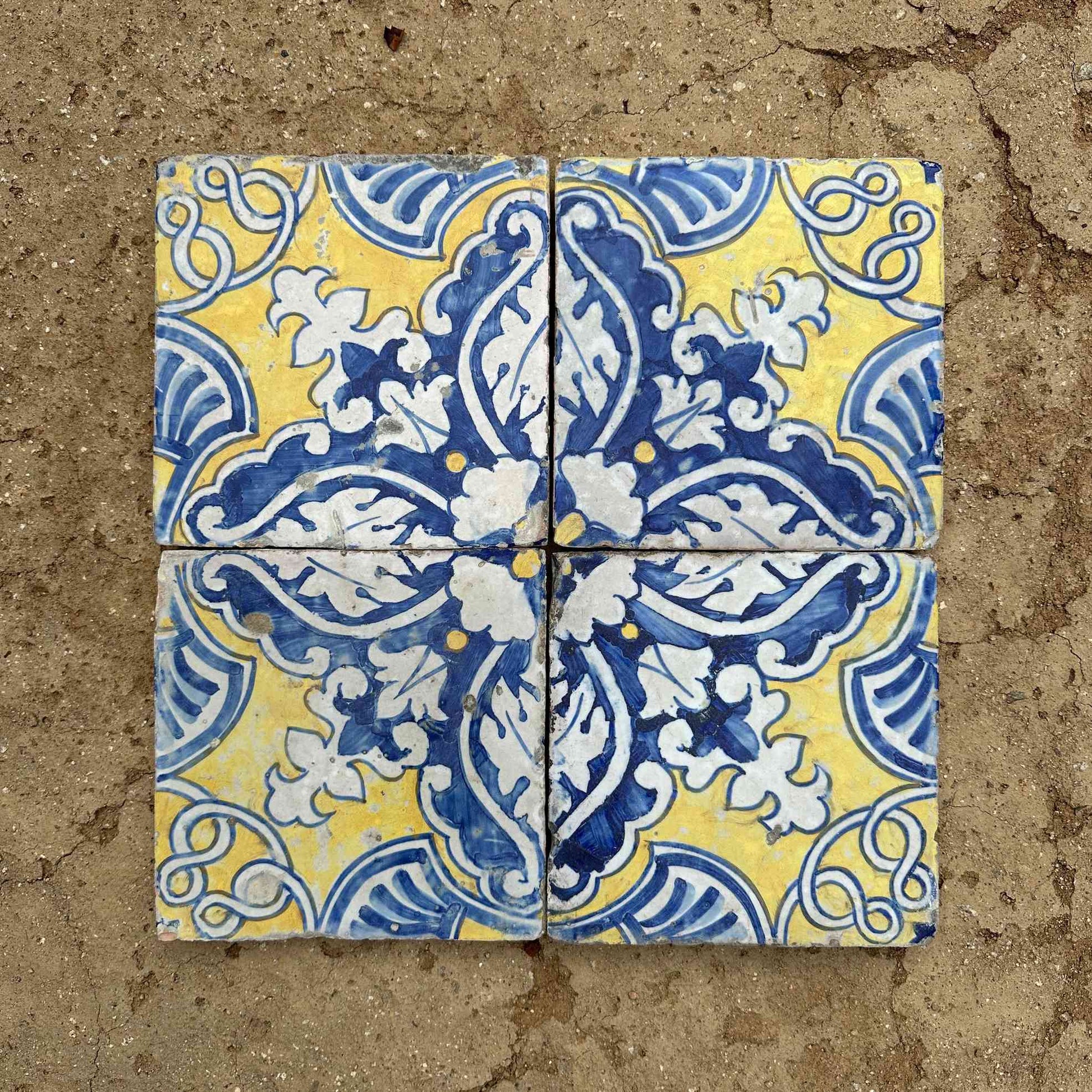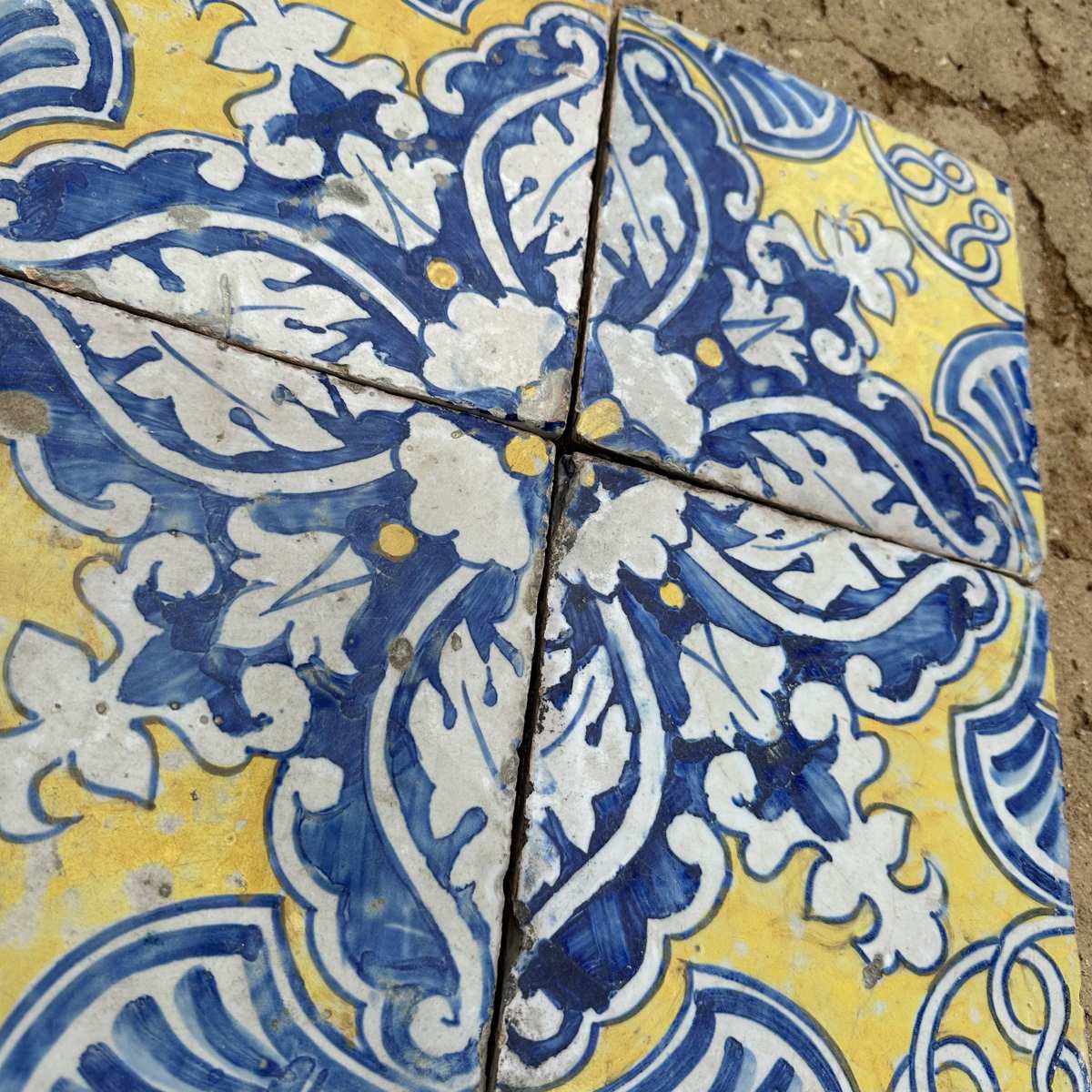 These salvaged majolica tiles are from the 18th and 19th centuries and come from Italy.