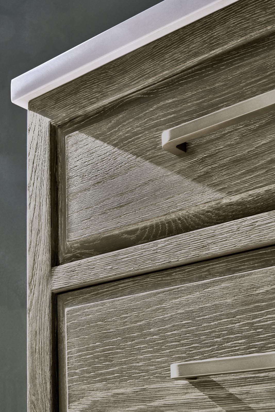 - Raised panel aesthetic constructed from single paneling with carved bevel drawer detailing; dovetailed drawers; tapered legs with adjustable leveling feet