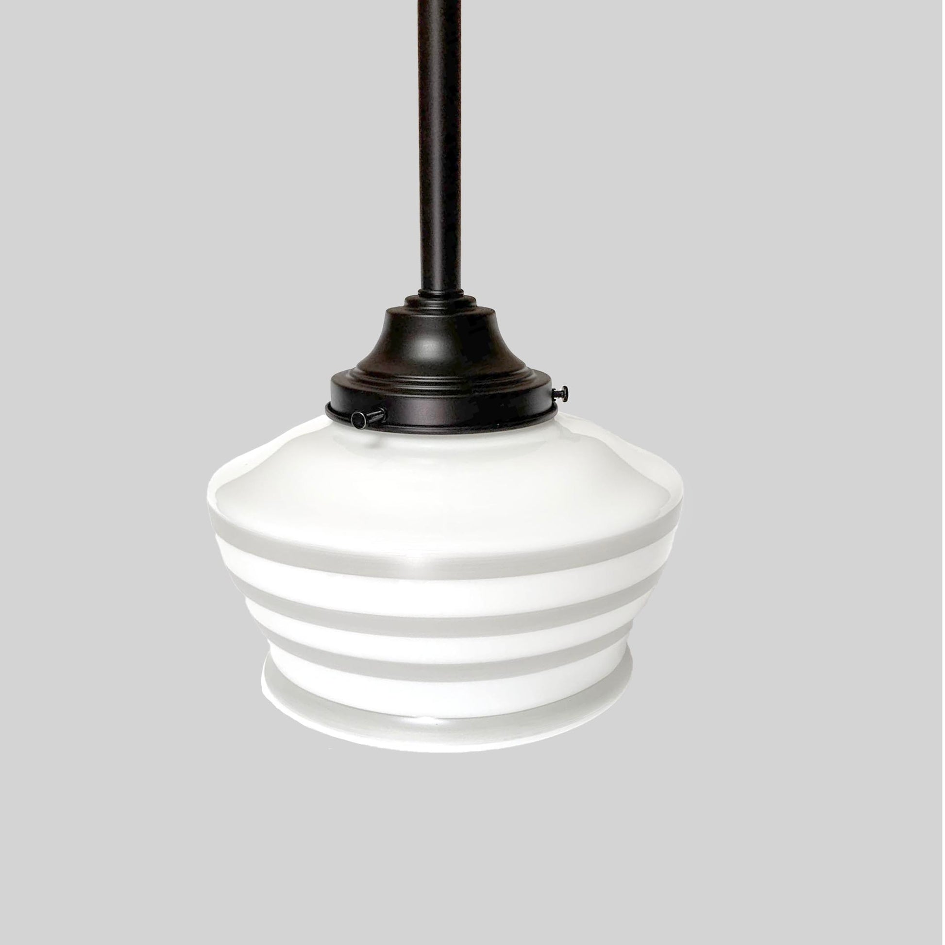 Schoolhouse Electric | Union 4 Pendant - True Black with Ogee Shade - Gray Bands