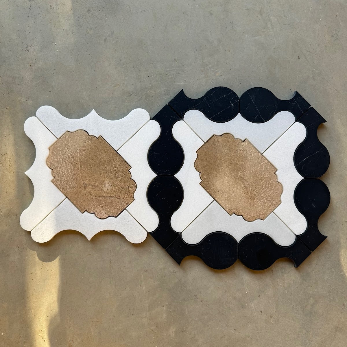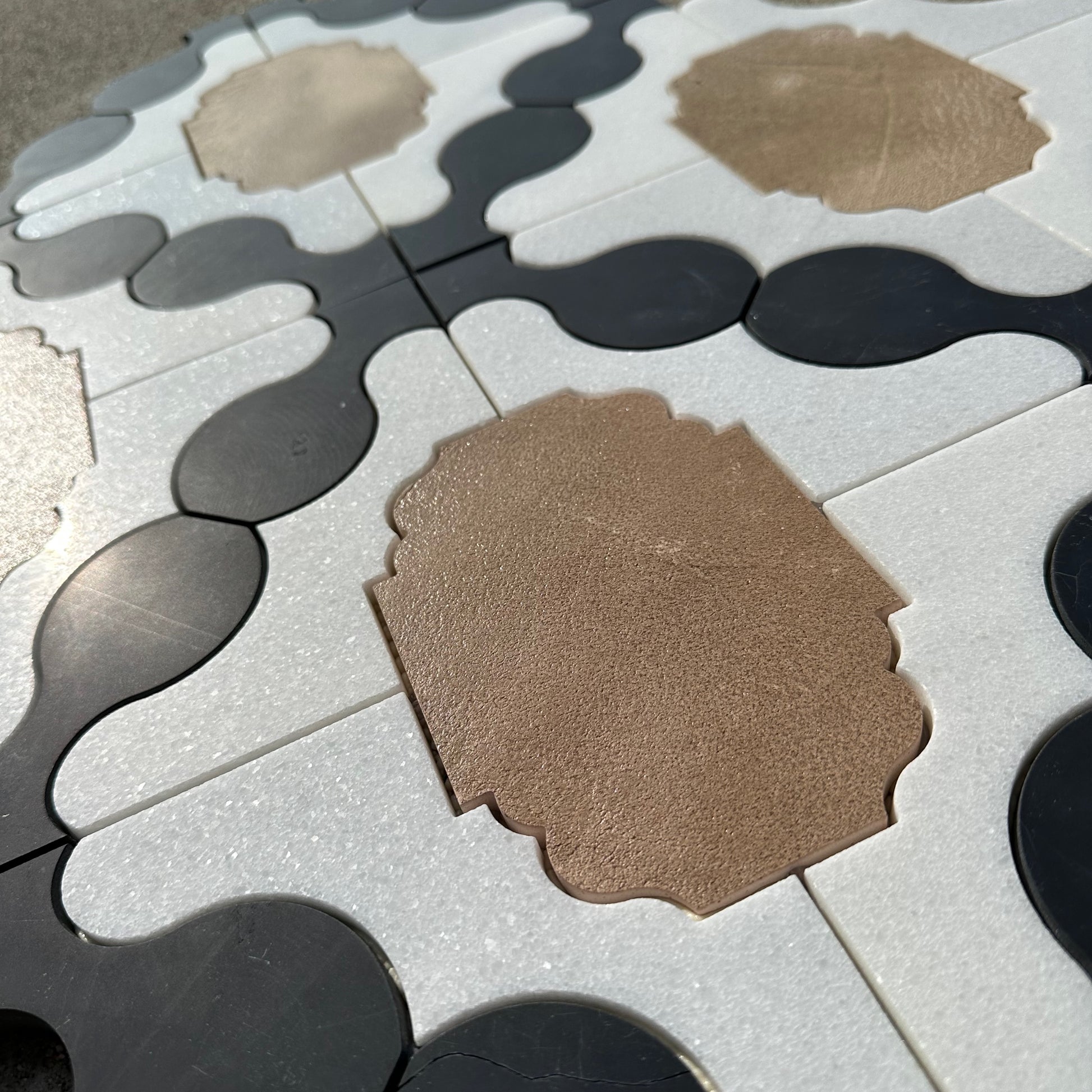 White is marble, Noir is honed limestone, Terra Cotta is material made by Tabarka Studio