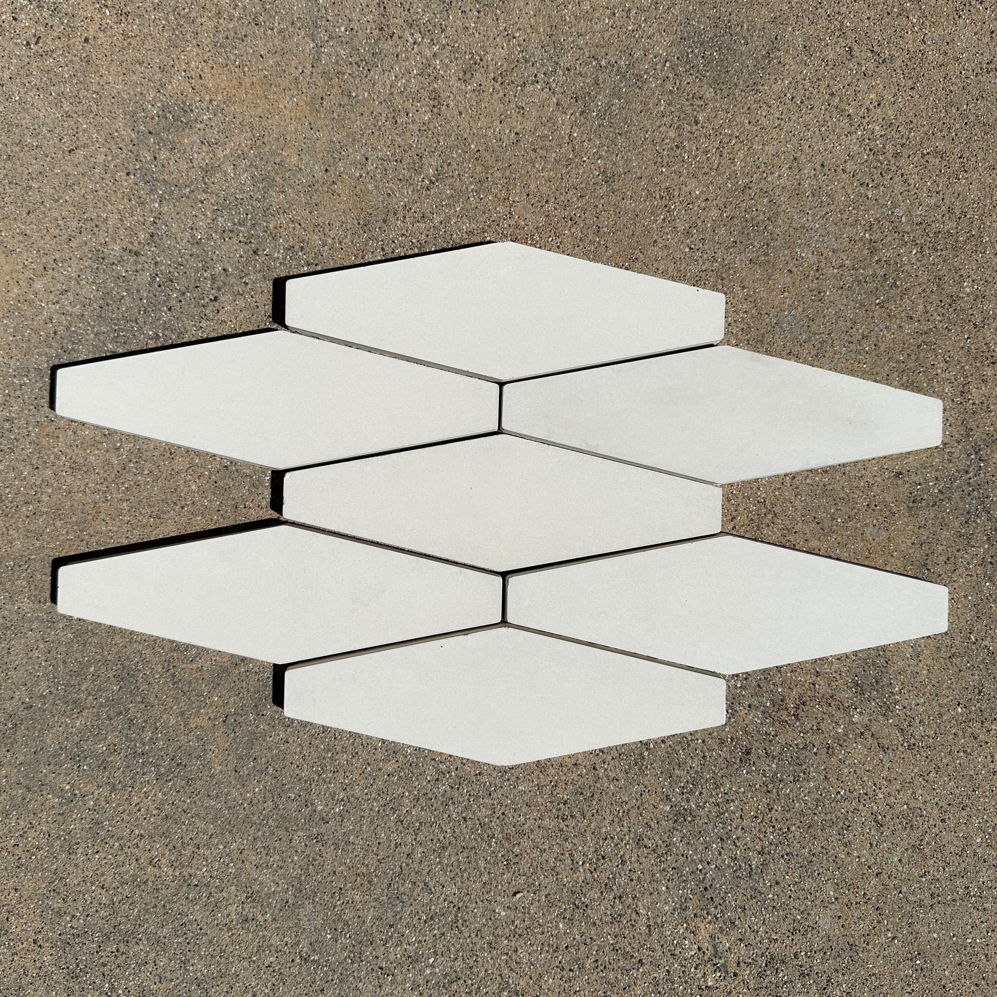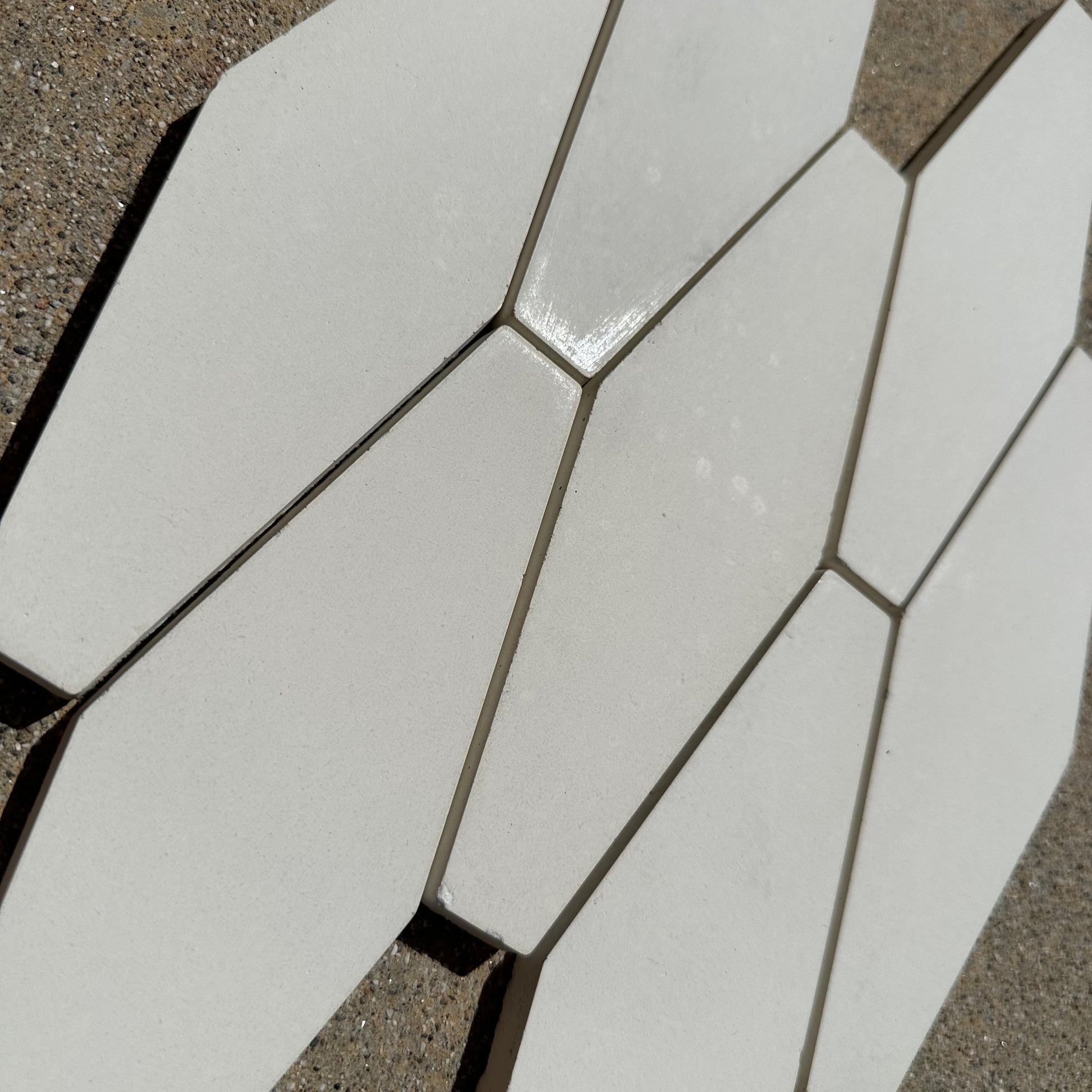 Tesselle | Élan White 8"x2.5" Elongated Hex Cement Wall Tile