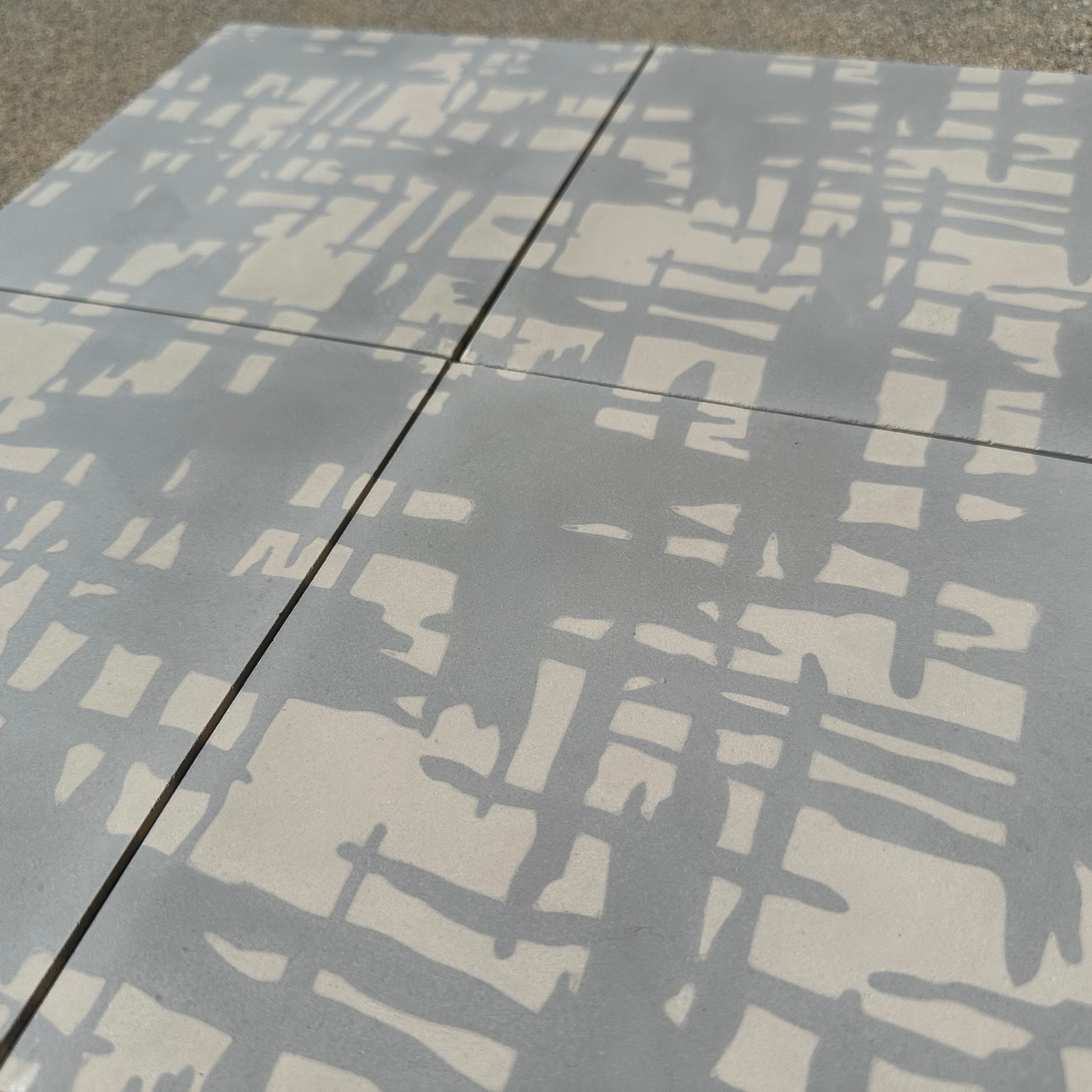 Shannon cement tiles in color Homespun are designed to be laid out in a random pattern, and the nature-inspired design is inspired by fabrics woven from natural flax fibers. Each tile is hand-pressed. This neutral color combination will bring sophistication to any surface. Shannon was designed by Karin Jeske.