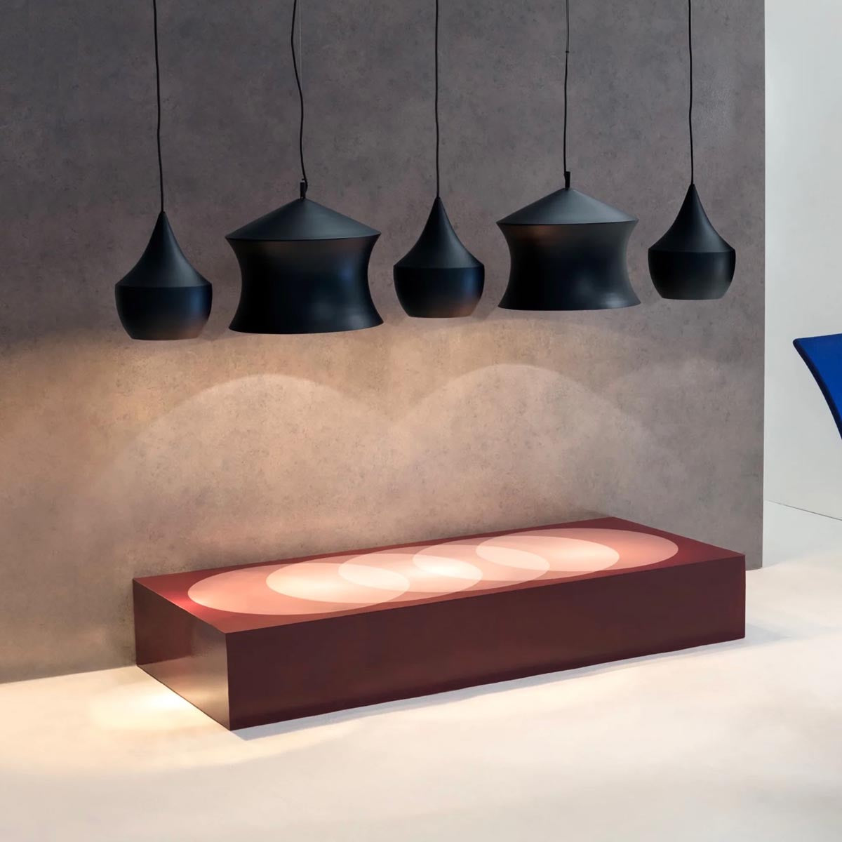 Beat Waist is one of the scaled-up additions to Brit designer Tom Dixon's acclaimed lighting series. Inspired by craftsmen in Jaipur and the shapes of their cooking pots and vessels, each shade is hammered from a solid sheet of brass and bears the hallmark of the artisan who created it. Apropos in both residential and contract settings, Beat Waist brings a refreshed silhouette and the option of greater light output.
