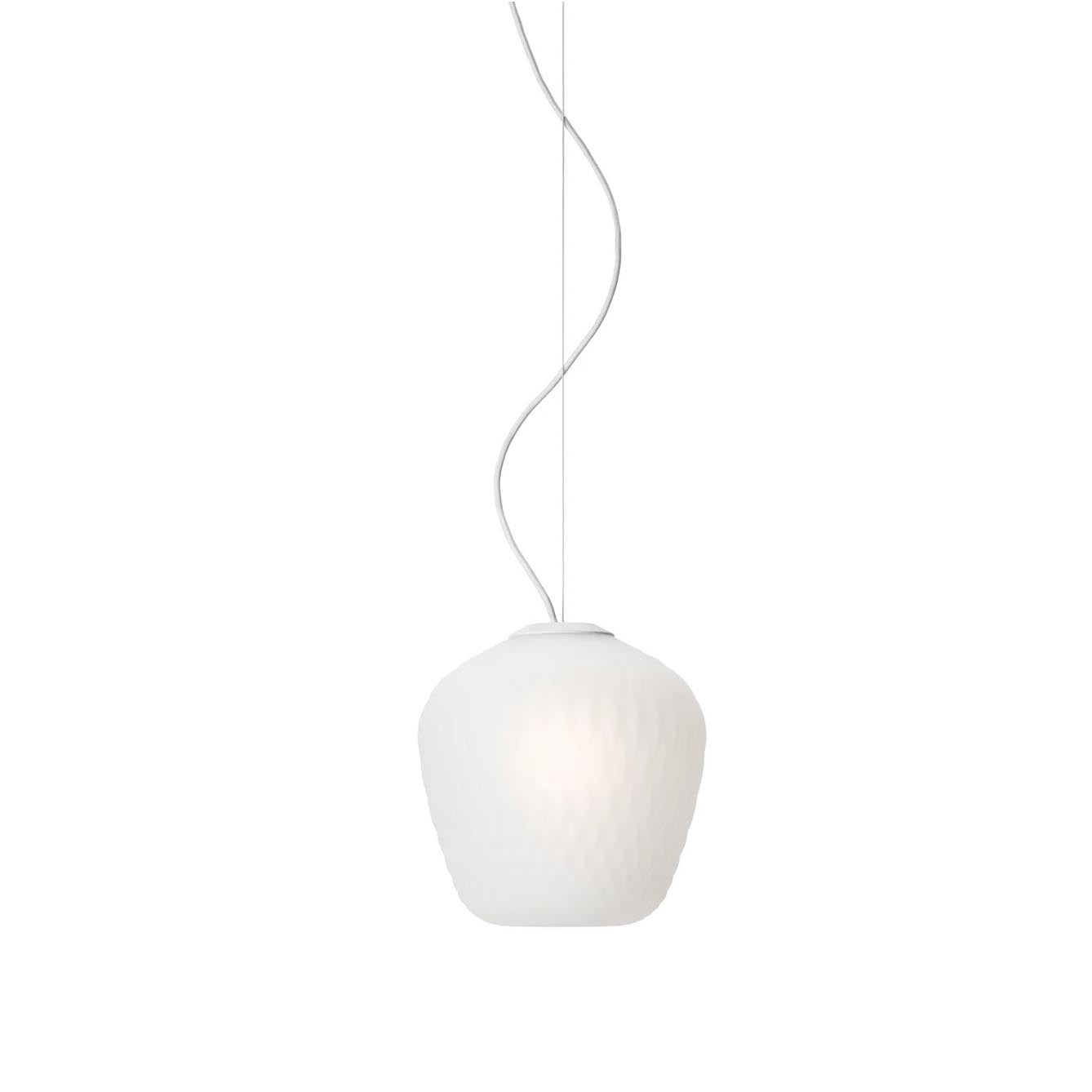 Before applying 3D technology, Samuel Wilkinson studied forms as varied as antique ceramics, old glass pieces and the texture of a raspberry. The inflation of each glass bubble came about then by way of 3D software to reach the best control of how the light would be refracted at diverse angles. No surprise that the London-based industrial design whiz gathered deserved acclaim at the London Design Festival for this mouth-blown Blown SW3 Pendant for Danish house &Tradition. The arresting quilted surface comes in 2 versions that produce distinctly opposite effects: a sandblasted matte opaque white that emits a subtle, sophisticated glow; or a burnished translucent silver luster that reveals intricate textures and patterns of light.