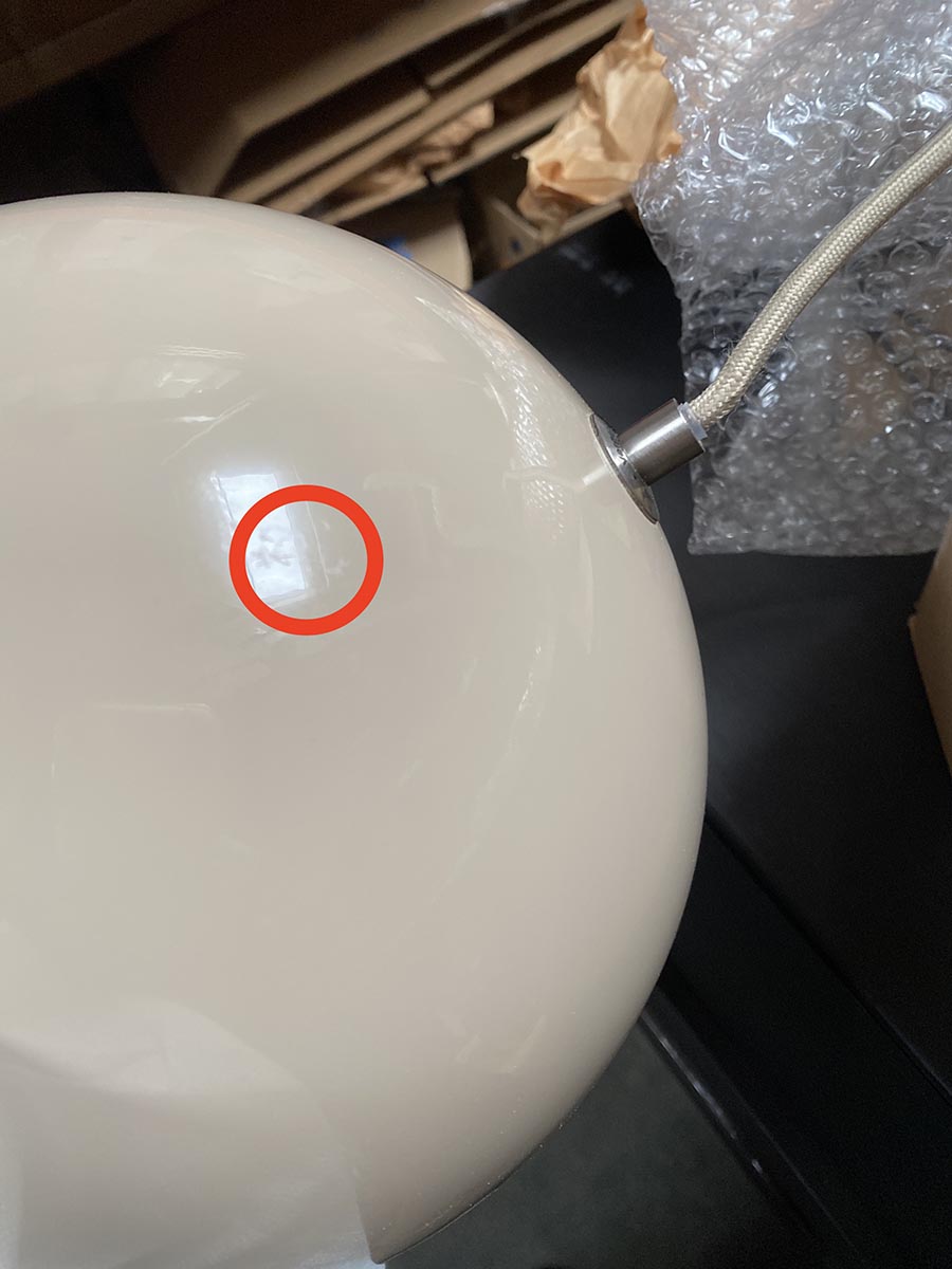 *This light is in very good condition. It was a showroom sample. It is not in the original packaging. There is a <1" scuff toward the top of the fixture. Please see attached photo. It is difficult to see.*